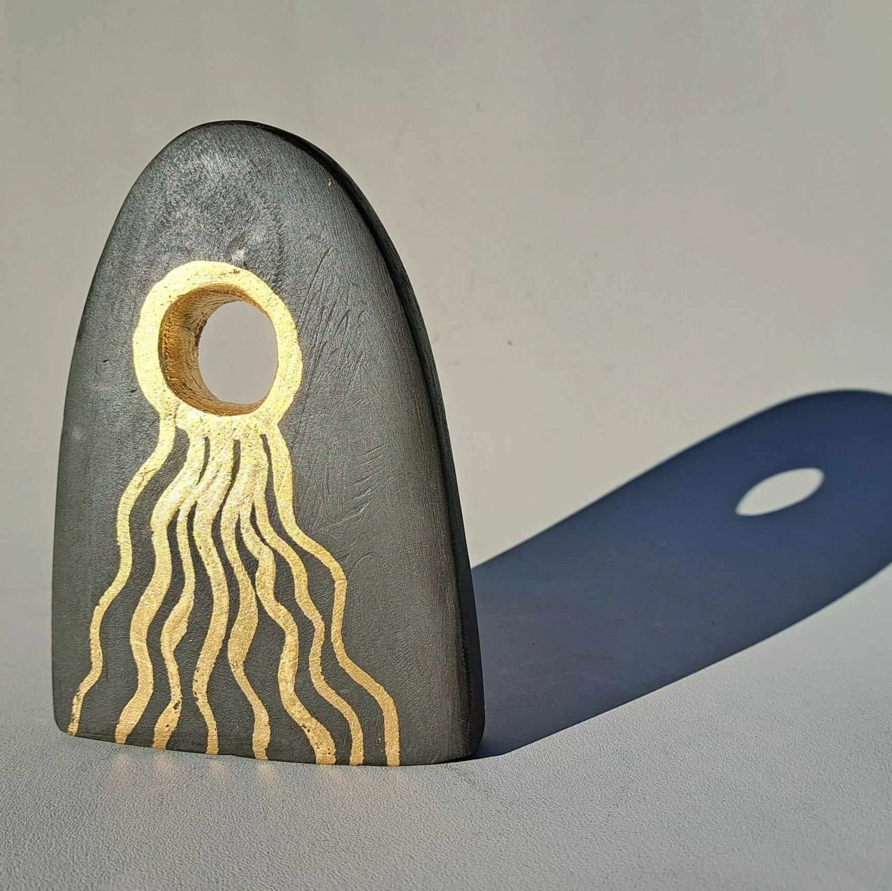 The Moon has long symbolized mystery, awe, and forces beyond our reach. These moon shrines anchor the viewer in primal intuition while flowing patterns evoke connection and the unseen. Inspired by a vision in a forest at night, the series offers a contemplative journey, honoring the Moon’s timeless significance and the universe within each of us.